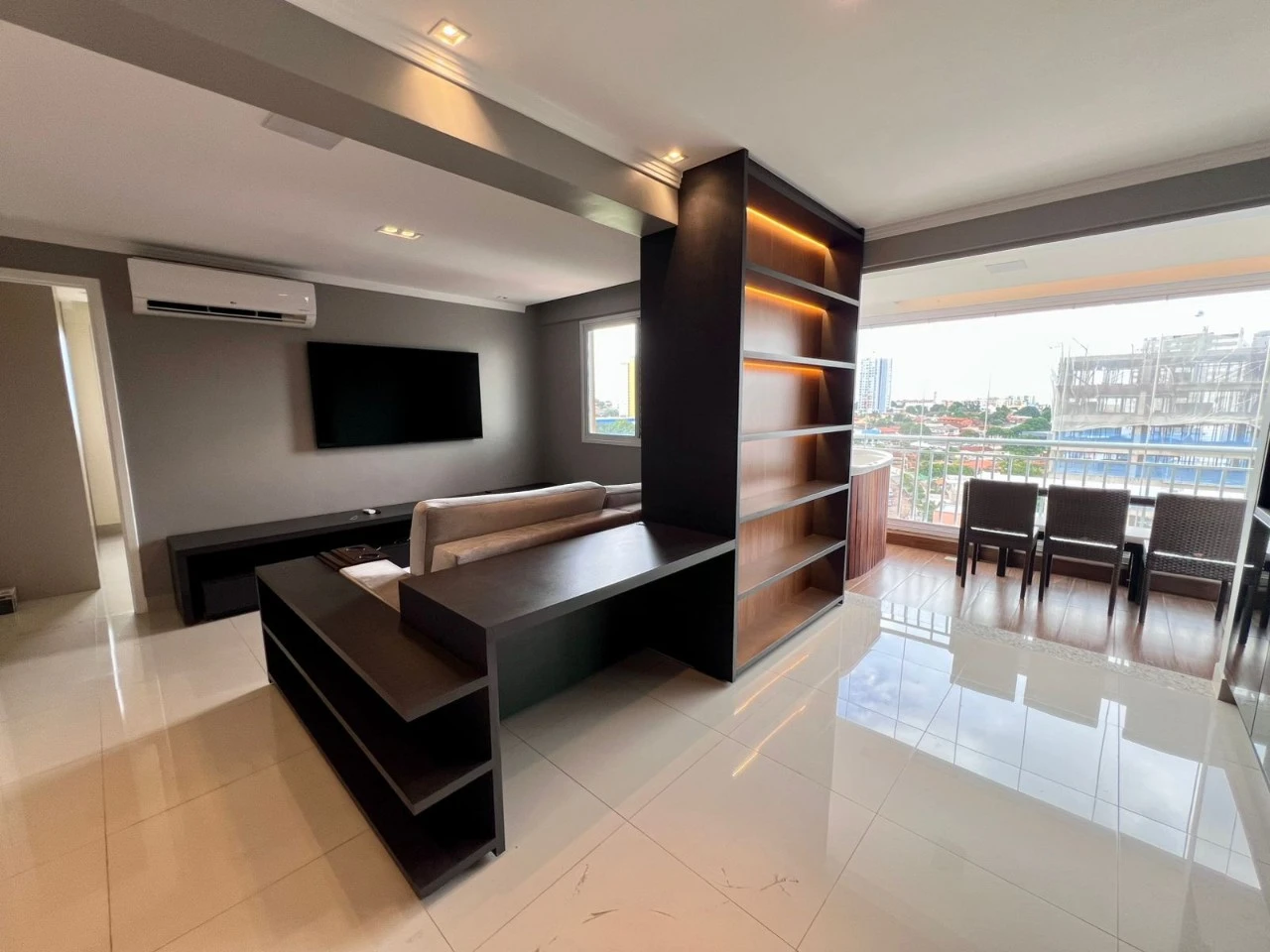 Mobiliado e decorado, todo climatizado, jacuzzi na varanda, 2 suítes plenas, nascente, andar alto, projeto de som na sala e na varanada