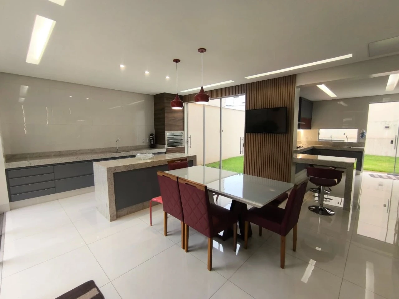 Duas salas amplas. Área gourmet integrada para receber amigos. Usina fotovoltaica gerando economia todos os meses. 4 vagas e dois portões de acesso.